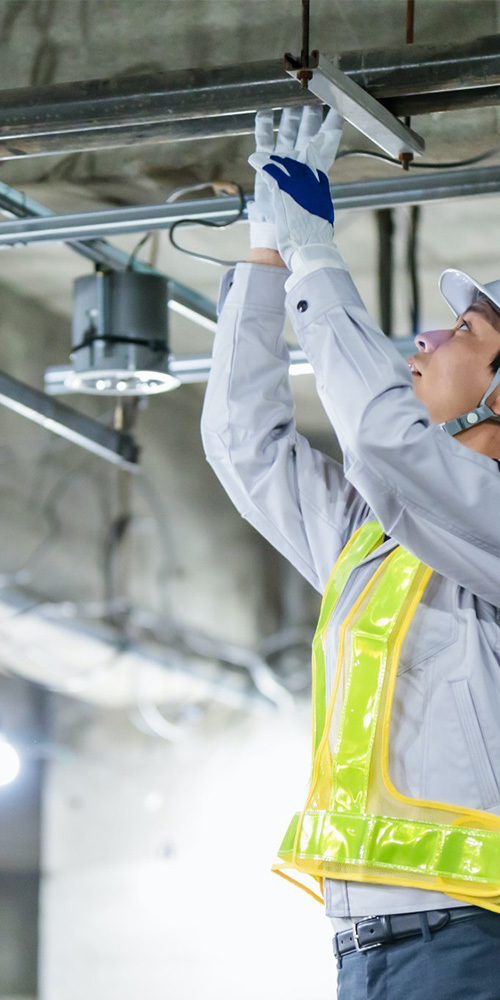 一般のお客様から事業者様まで、そして一戸建など、屋内外の電気設備工事及び保守点検を承っています。コンセントの増設や電気容量の見直し、改築・改装に伴う電気設備工事など、経験豊富なスタッフが快適でエコな未来へのお手伝いをいします。